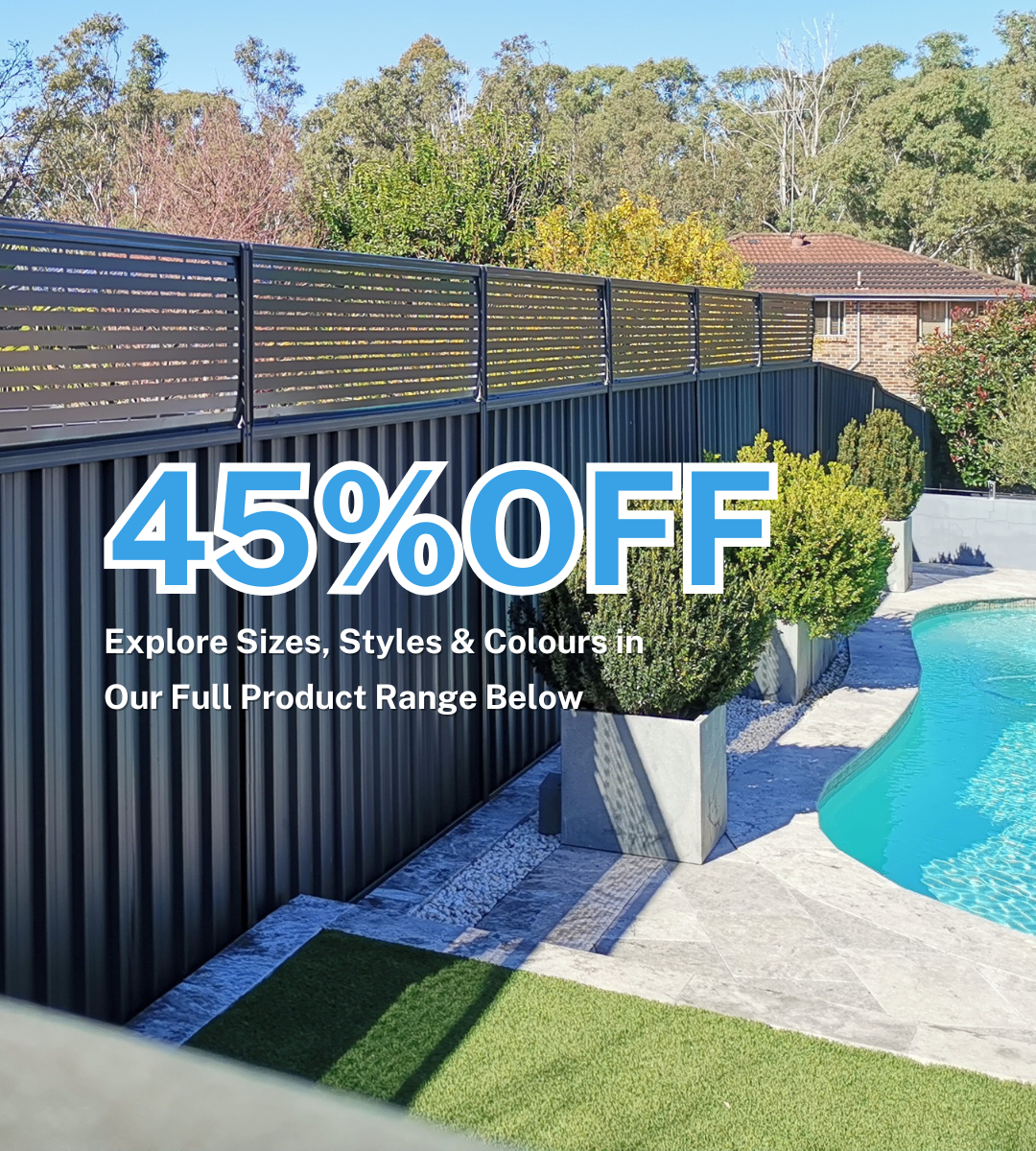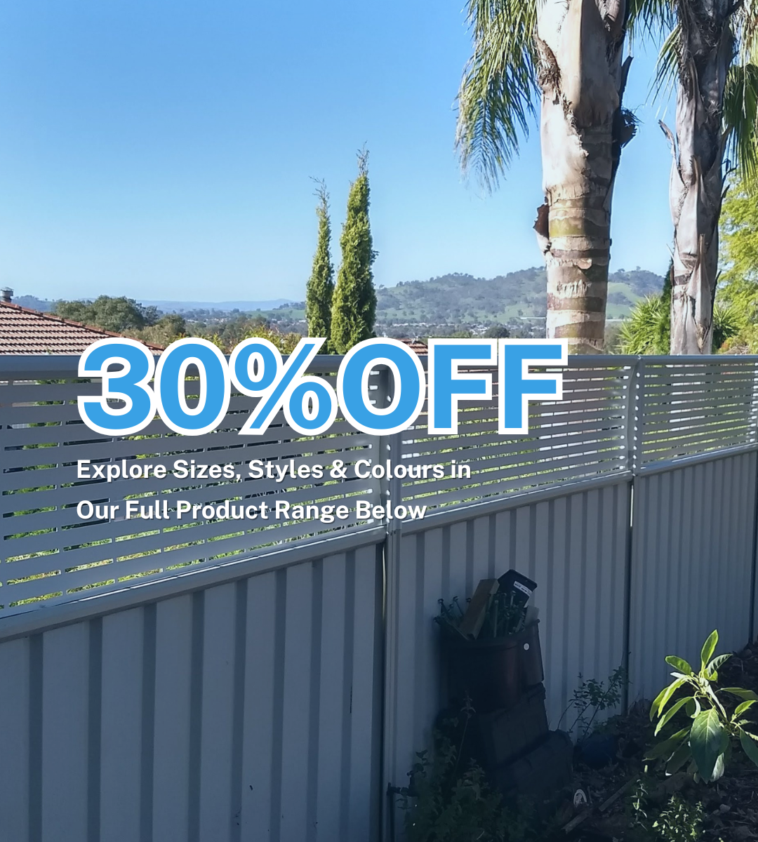 Extends 'good neighbour' style Colorbond fence. Choice of privacy, slat, lattice, picket, Polakadot and Galaxy style, with all required fittings & components.